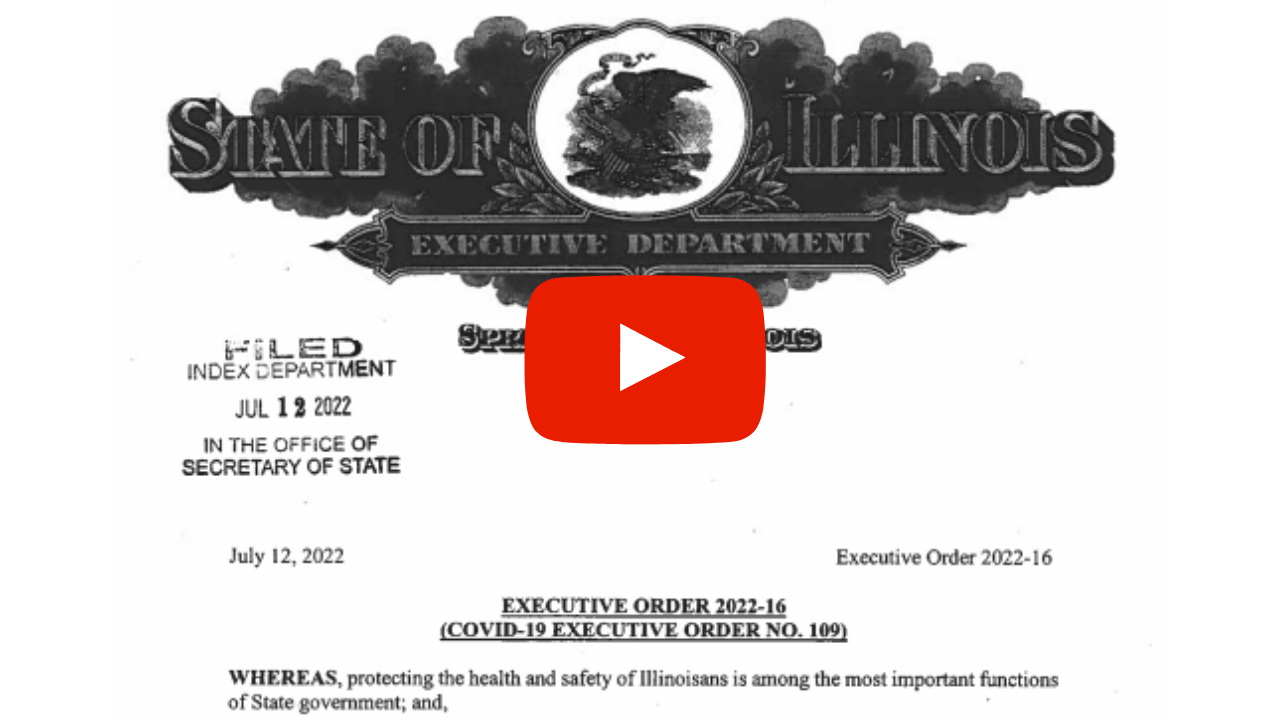 Many of you have seen stories today new stories regarding an announcement that Governor Pritzker made modifications to the vaccine requirements, or the testing requirement portion of COVID-19, and a lot of the COVID executive orders. The first thing I want to tell you is, the order does not change any requirements for chiropractic physician or physician or dentist office. All of the healthcare offices that are standalone facilities like the vast majority of our doctors, those requirements have not changed, and has still, you know, still revert back to the previous extension that went from June through July 24.